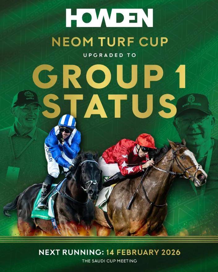 沙特赛马会近日宣布,将豪登新未来城草地杯(Howden Neom Turf Cup)的总奖金提升至300万美元,该赛事自2026年起将升级为国际一级赛。这项2100米邀请赛将成为沙特首场本土举办的草地一级赛,于2月14日星期六沙特杯赛马日举行。