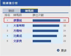 廖康铭本赛季已累计赢得33场头马。他说:“我认为练马师需要为整个赛季制定全面计划,对购入的马匹也是如此。四岁马经典赛事系列深受香港马主重视,因此在选马时也需要考虑这一点。”