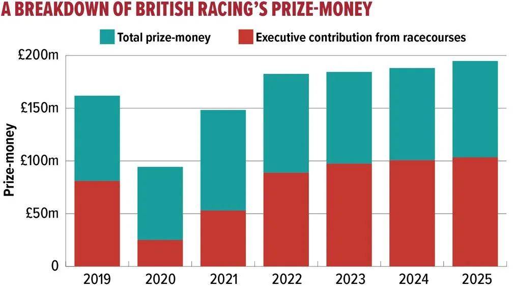 英国赛马征税委员会(Horse Racing Levy Board,HBLB)也通过各种计划增加了投入——加上BHA发展基金(BHA Development Fund)注入的130万英镑——同时马主支付了2680万英镑报名费,占总奖金的14%。
