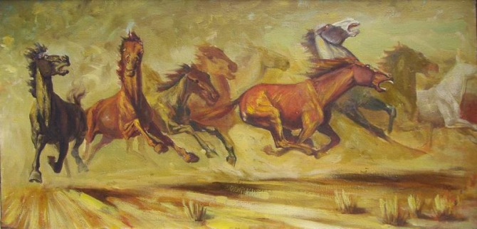 名称:奔腾西部,所属相册:油画马