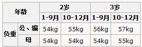 先来说说固定重量。同一年龄的马进行比赛,以2、3岁马为主,一般称作年龄限定赛。由于香港方面没有2岁马的赛事,所以这里我们以日本的规则做一参考。见下表: