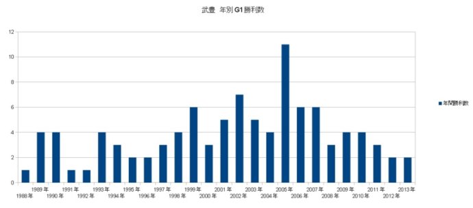 2013年11月17日在一哩冠军杯赛上,武丰骑手策骑2番人气马「太陽神驥」(トーセンラー,Tosen Ra)赢得其骑手生涯的第100个G1优胜。自1988年11月6日菊花赏上策骑3番人气马「超級小海灣」(スーバークリーク,Super Creek)首次获得G1优胜以来过去了25个春秋。对于一个不太了解赛马的人听来,能取得100个G1优胜也算是很厉害的人物了吧。但要是知道排名第2位的岡部幸雄只有32个G1优胜,第3位的安藤勝己只有29个G1优胜的时候,如此之大的差距是不是会更惊叹武丰做为骑手的厉害呢?
