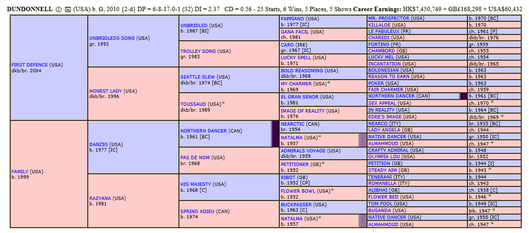 这匹马的血统非常很难得!不但是Special 5x3x4,而且Thong和Ridan是兄妹,而且这5h线是很厉害的Shoes 家族!也就是Sadler's Wells血统里面的一个要点!