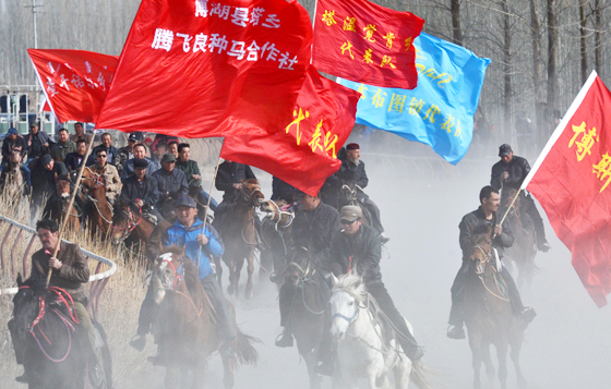 图为 在博湖县第四届“博斯腾杯”赛马大会上,19支分别来自于巴州、乌鲁木齐、昌吉、石河子、喀什、和田、伊犁等地的代表队参与角逐。(记者 确·胡热 摄)