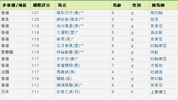 * 此赛事自2005年起公开让外地马匹参赛。