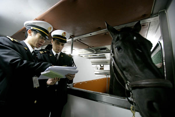 皇岗出入境边防检查站边检处参谋朱凯告诉记者,马匹运输需要由货运通道过关,一般而言一辆过关货车除司机外,不允许携带乘客,但是马匹运输车需要配备专门随行的马童,所以皇岗边检将根据要求对司机、马童、马匹运输车等统一规划,马童跟马将不需要分离,在边检查验通道里可完成所有的查验,一次性通关。