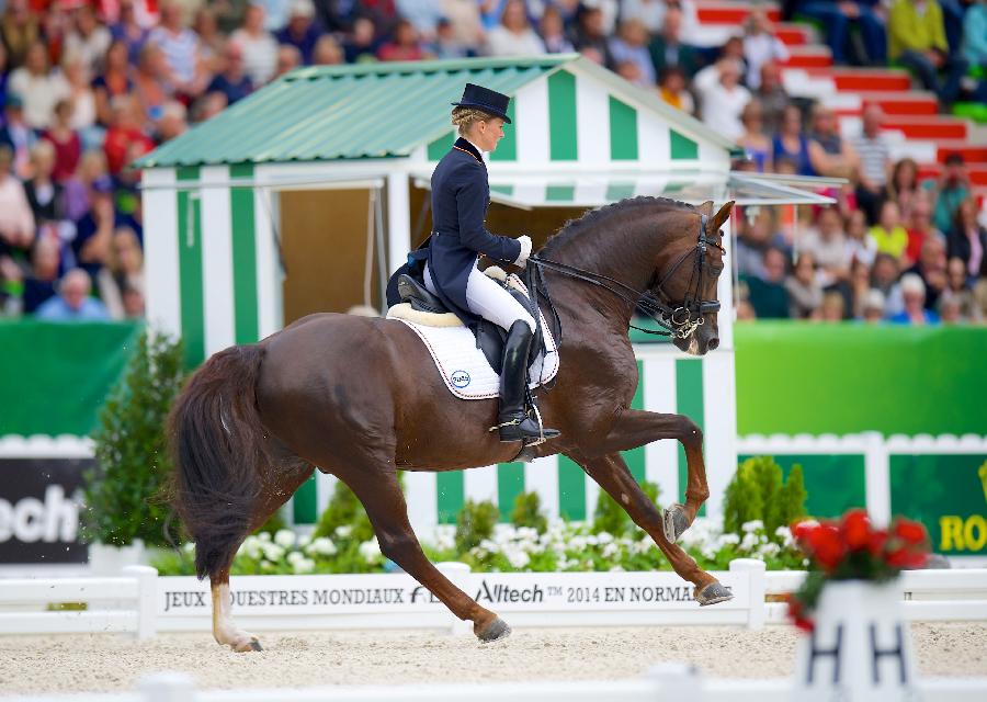 8月27日,在法国诺曼底举行的世界马术运动会上,英国传奇骑手、奥运冠军夏洛特·杜雅尔丹夺得盛装舞步金牌,德国骑手兰杰汉尼伯格和克里斯蒂娜-斯皮尔分获亚、季军。