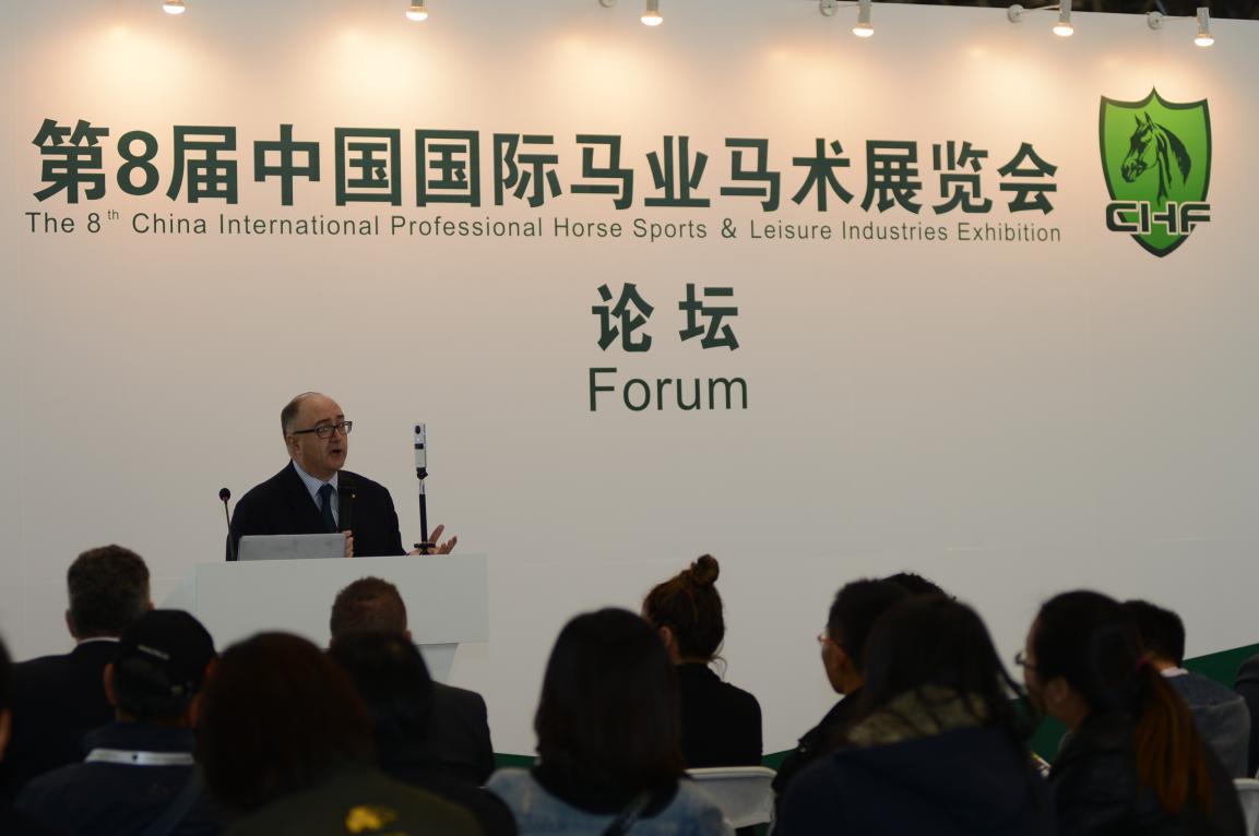 在展会现场的“论坛区”,来自德国、爱尔兰、法国、比利时和阿根廷的马业专家针对马匹的繁育和培训等问题进行了专题讲座,希望帮助国内的专业买家更多地了解到国外的最新产品并且学习到国外的先进技术。