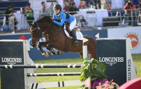 在刚刚结束的110-115cm精英赛中,17岁的小姑娘李亦丹喜获冠军。本场比赛竞争相当激烈,共有25对人马组合参赛,近10对进行了附加角逐赛。