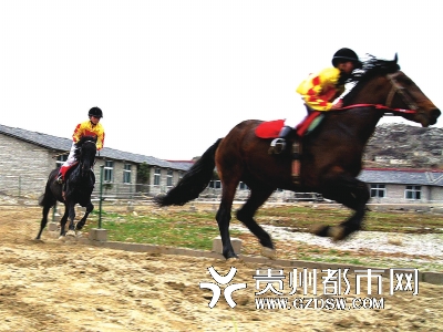 昨天下午4时,安顺兴黔良种马养殖场,“黑旋风”和“火龙”在两名骑手的带领下出场了。马场场主杨志学说,他们正在进行最后的训练。