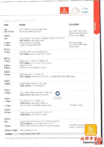 4.今年是迪拜世界杯开始举办的第20周年纪念,也从人工合成跑道转为泥地跑道的第一年。