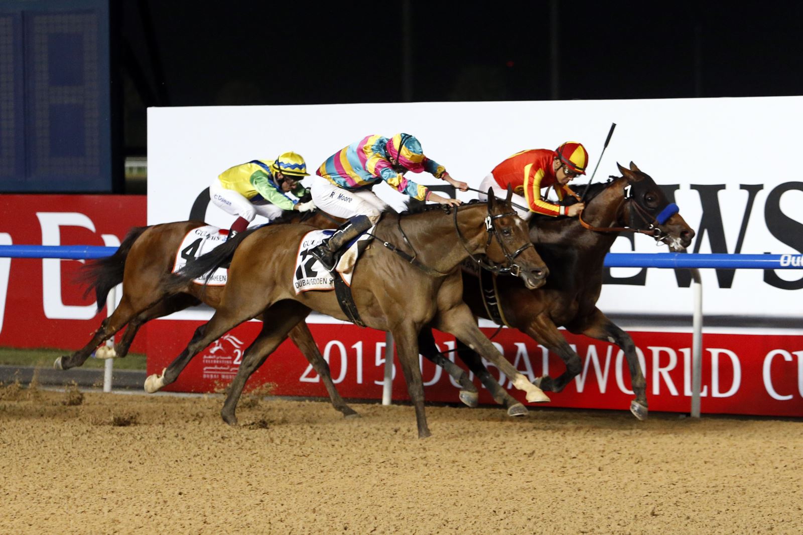 七匹香港佳驷于3月28日星期六晚上在美丹马场角逐迪拜世界杯赛马日其中三项一级赛,虽然成绩不俗,但却未能夺冠。然而,香港的短途良驹是夜仍然能为马迷及幕后团队带来一些欣喜,于两场短途大赛闯入前列,其中“幸福指数”及“积多福”在力拼下夺得亚军;至于香港马王“威尔顿”则在迪拜司马经典赛(2410米草地一级赛)中跑获殿军。