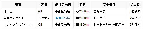 3岁马;日本中央竞马会JRA登记马匹( 包括外国产马);最多接受18匹马出赛。