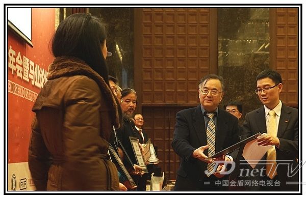 中国马业协会理事长贾幼陵为第七届理事颁发证书