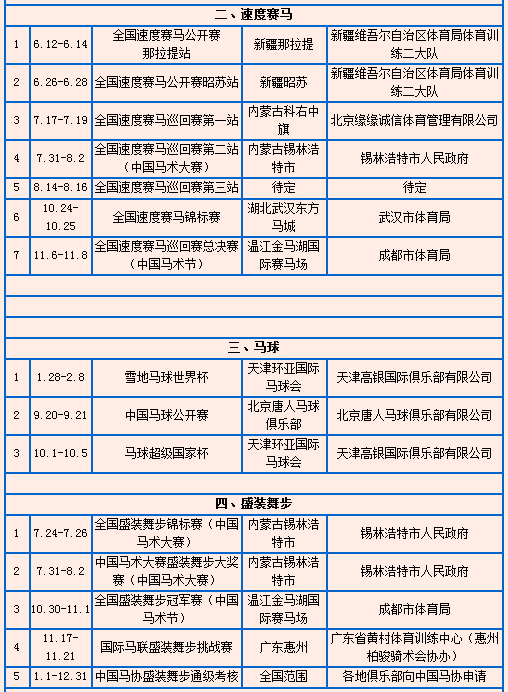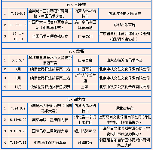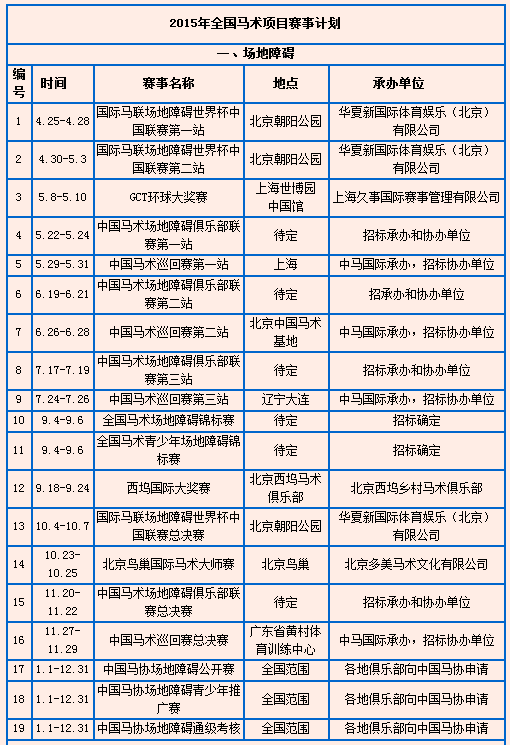中国马协发布2015年全国马术赛程 44场赛事贯穿整年