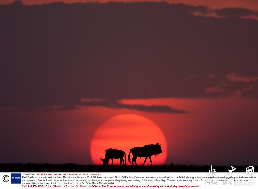 2014年6月4日报道,多年以来Paul Goldstein一直想在马赛马拉国家保护区拍到完美的日出日落,而正是为《出埃及记》的拍摄探险队担任向导,使他终于有机会用镜头记录下这令人惊叹的景色。