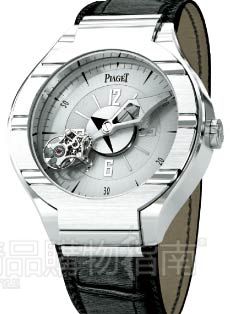 腕表采用银色表盘设计,搭载伯爵自制608P手动上链陀飞轮机芯。分针中央轴心在表盘上,以每小时为单位运行一周。而陀飞轮框架则悬置于分针末端,随着框架轴心以每分钟为单位旋转一周。这款相对陀飞轮的表款,可以看得到它的外形其实是polo系列,看上去是一个运动且时尚的款式,可是,它把一个非常复杂的机芯放在里面,这是一种混搭,运动的外表优雅的内在还加入了些许的趣味。