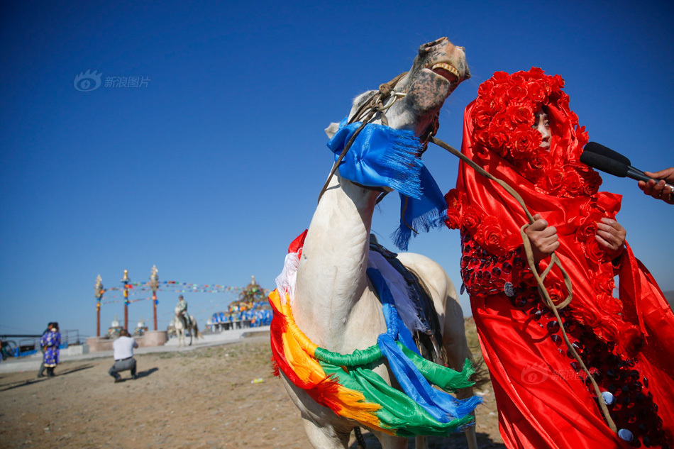 在歌舞和一些民俗礼仪之后,仪式渐渐被推向高潮。在司仪的指挥下,一匹作为“新郎”的蒙古马被工作人员牵到会场