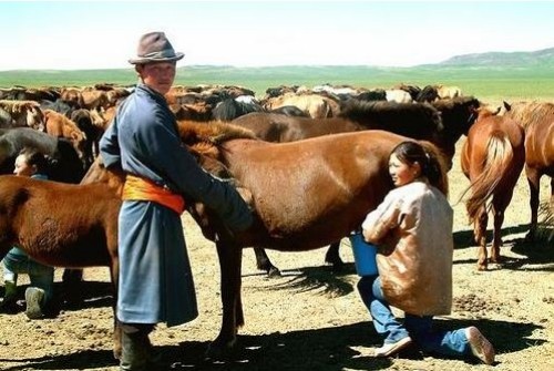 酸马奶也就是我们习惯上所说的“马奶酒”,蒙古语中有两种叫法,即蒙古国和新疆地区叫“艾日格,airag”、内蒙古自治区叫“策格,chegee”。是蒙古族等北方游牧民族传统的奶制品。根据有关报道国北疆地区的各游牧部落至少六千年前把野生马驯服为家畜,开始发展了养马业。蒙古高原是世界马业的发源地。因此,乳业(奶业)文化史研究专家们对蒙古高原调查考证后发现,在远古时期居住在我国北方草原上的少数民族,由于游牧生活的需要,游牧民们外出时常将灌满马奶的皮囊背在身上,这样以人体体温的作用和骑马颠簸的缘故,使皮囊内马奶的乳酸菌和酵母菌大量繁殖,最终导致了马奶发酵变酸。牧民们通过品尝后发现,这种发酵并呈渣状的马奶,异常的好喝,并喝后给人们以兴奋感。这样发酵并呈渣状的酸马奶便是现在人们所公认的我国最早的马奶酒了。随着时间的推移,广大游牧民了解到酸马奶的自然发酵形成规律,并在游牧生活中经过多少年的反复实践后,摸索出酸马奶“桐制”的最原始的人工制作法,“桐”是撞击的意思。就是把马奶装在皮囊内,经过不断的撞击,使其升温发酵,成为酸马奶。